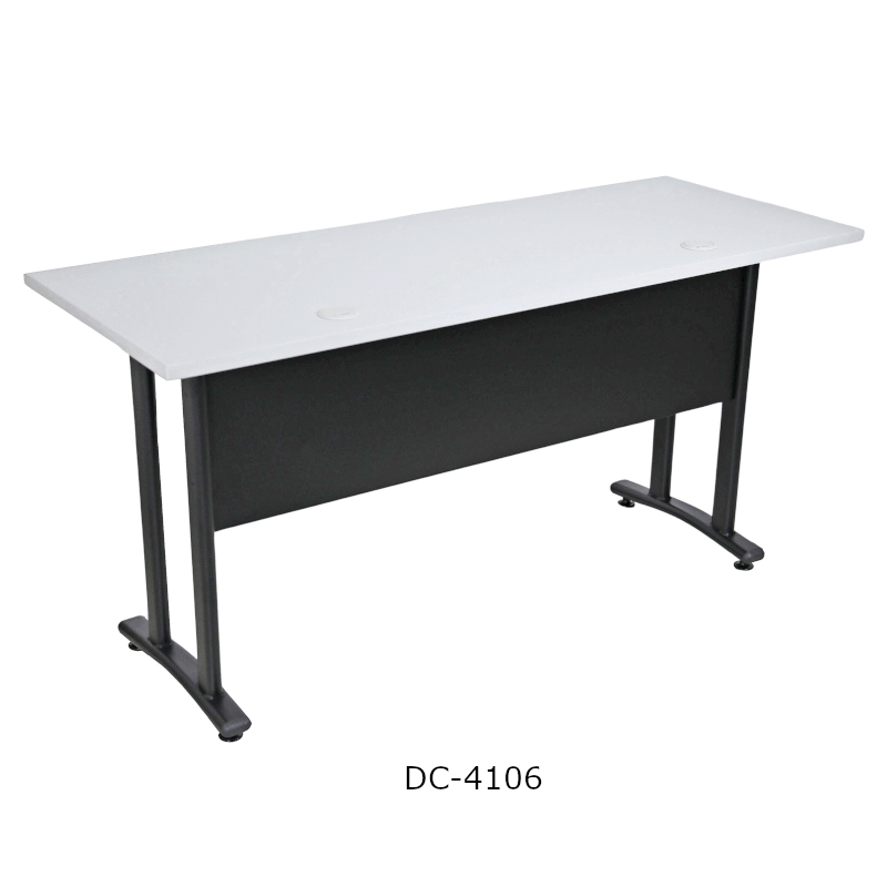 Estructura metálica de tubo 50*25*1.0mm y 61*33*1.0mm con pintura al horno. Sobre de melanina de 25mm. Dimensiones: 150W*60D*75H cm. Color: negro y gris. Peso de producto: 25.50 kgs.